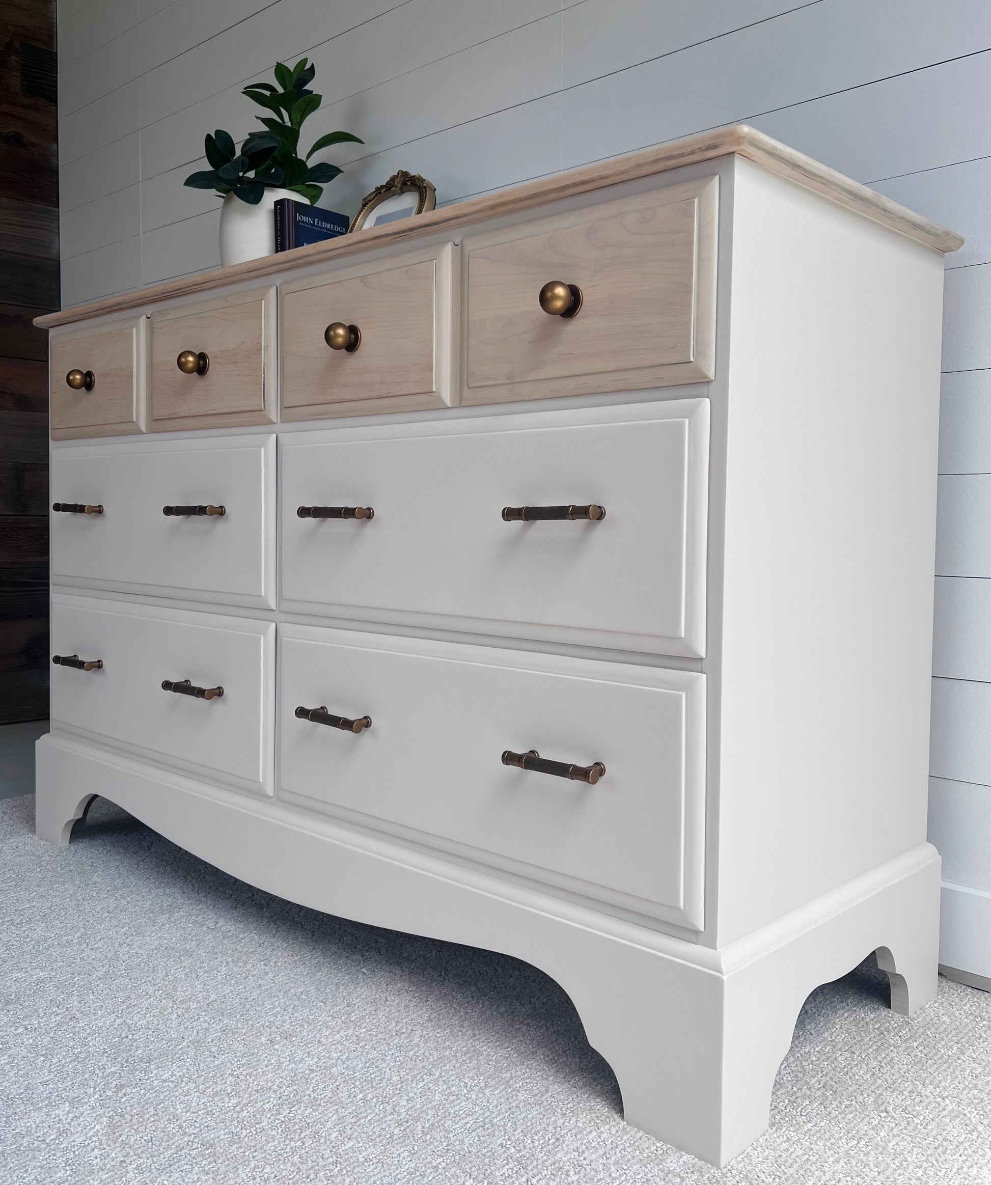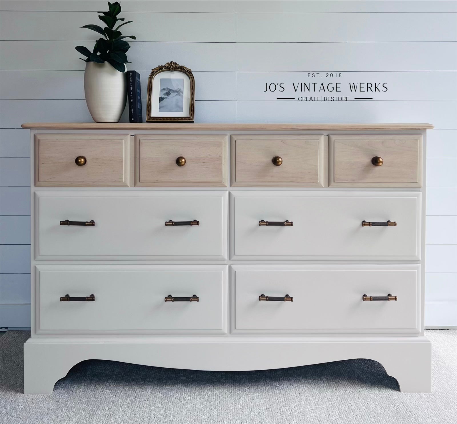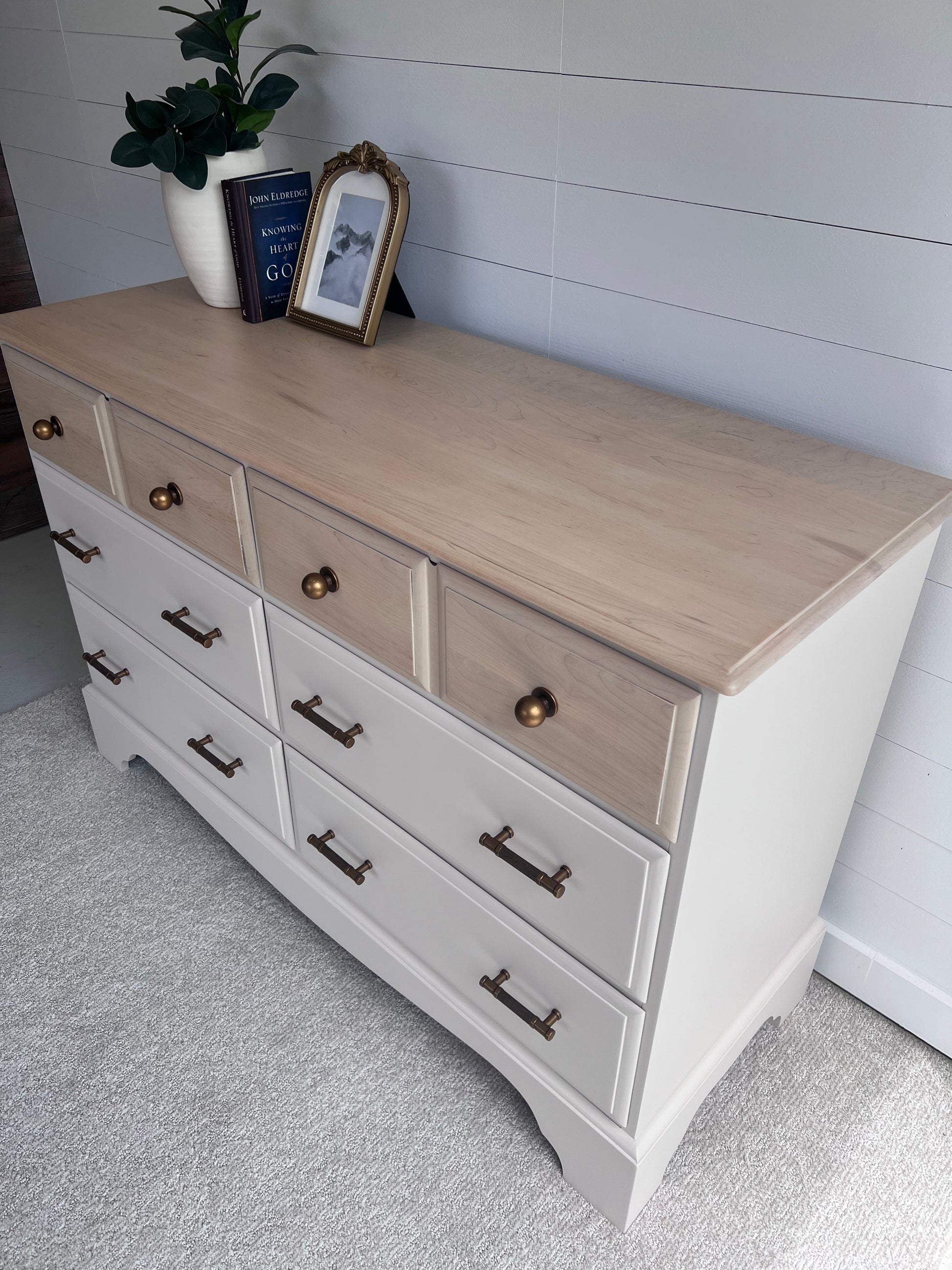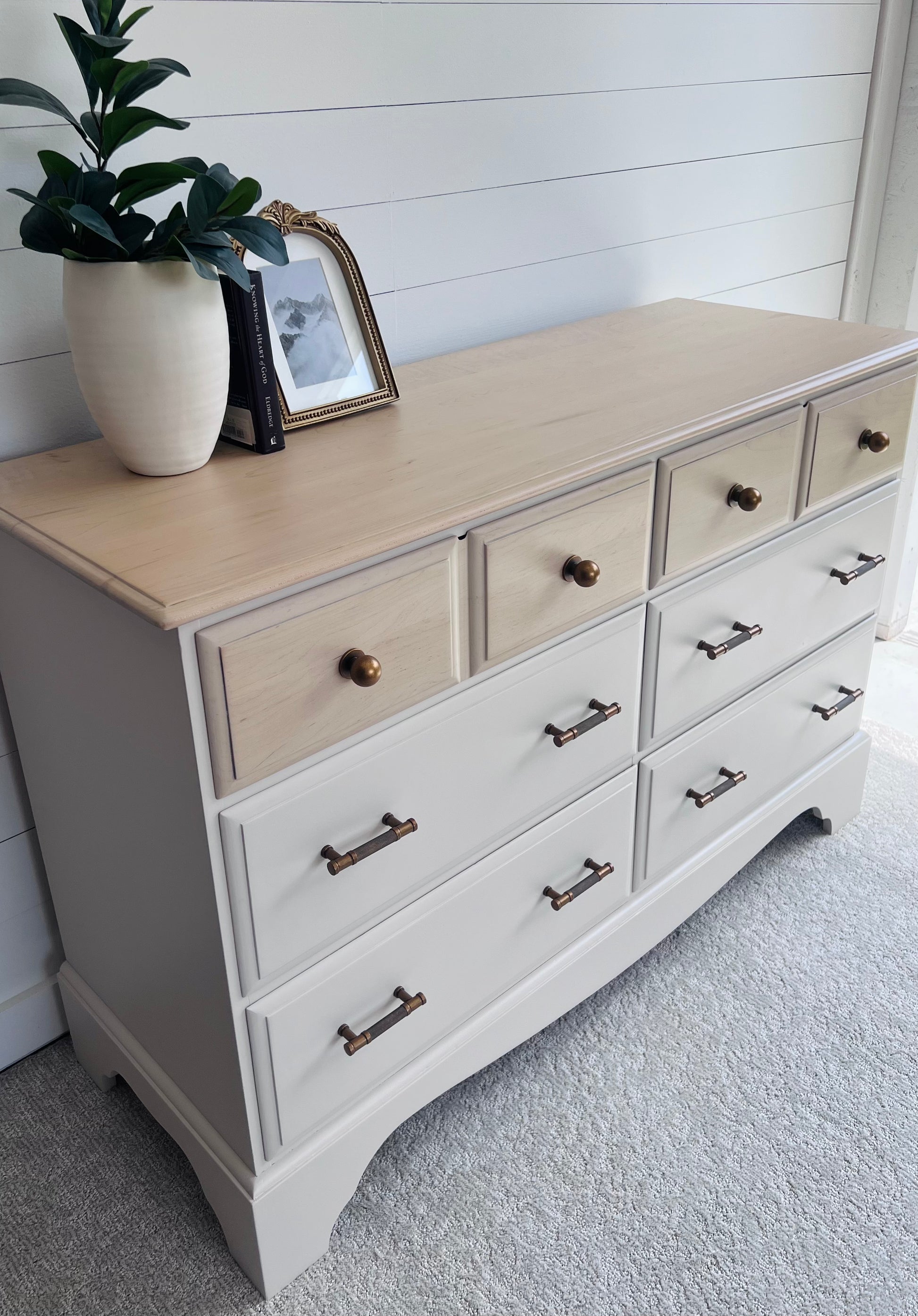 This beautiful Vintage Maple 6 Drawer Dresser has been meticulously redesigned to give it new life and purpose. This dresser would look beautiful in a bedroom or useful in living space!