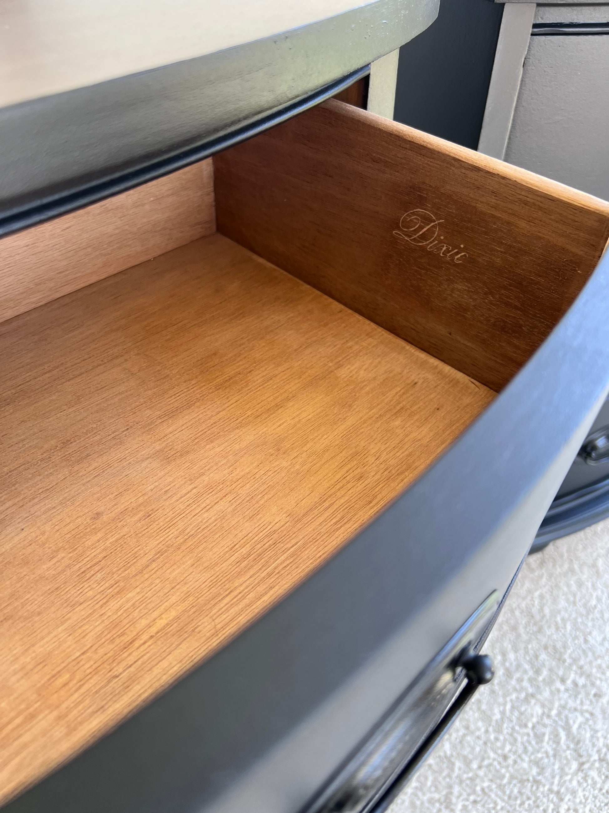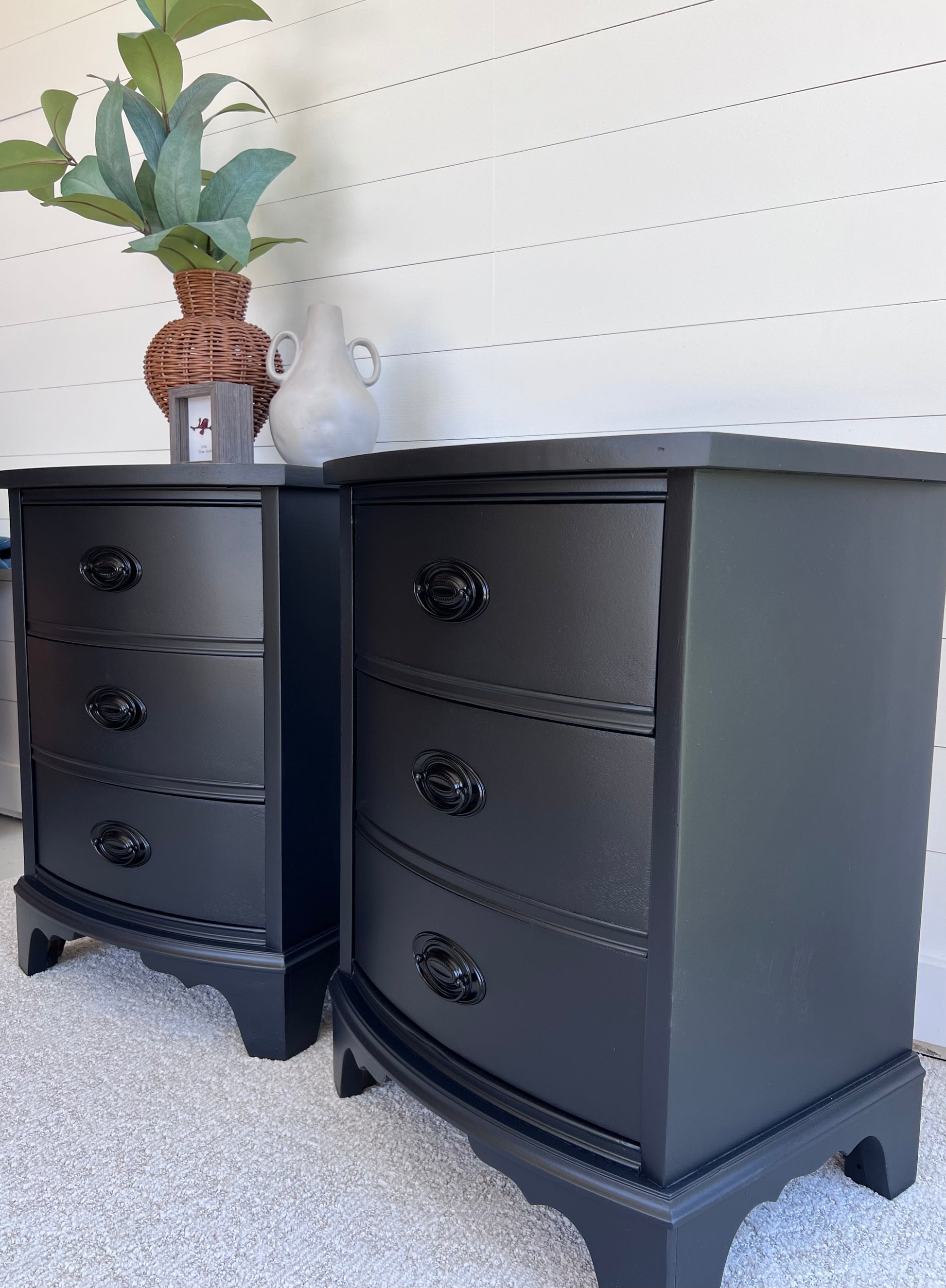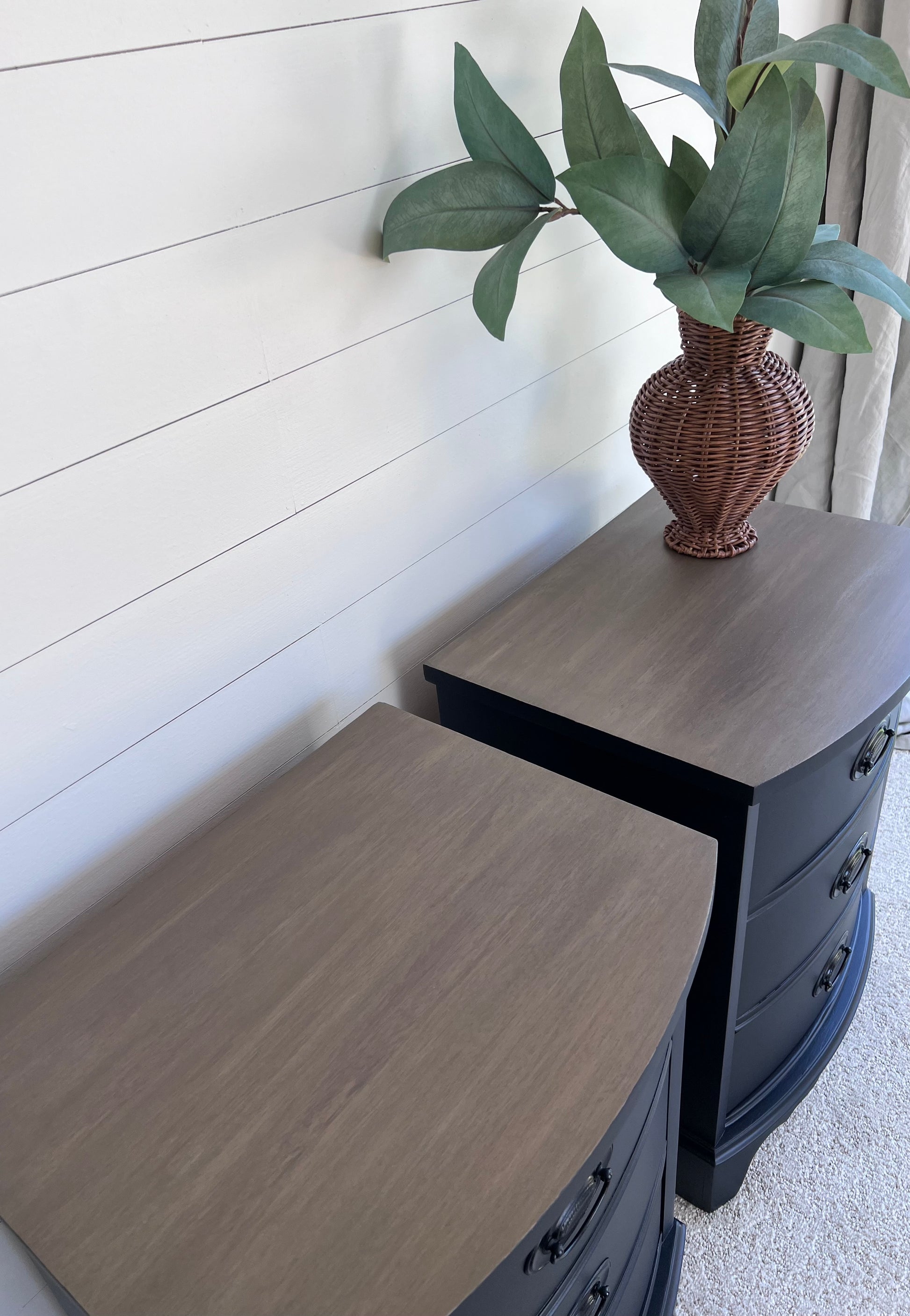 These beautiful vintage Dixie Nightstands have been redesigned to give them new life and purpose. These nightstands/end tables would look beautiful in a bedroom or useful in living space! Sold as set. *PLEASE INQUIRE REGARDING SHIPPING* Measurements: 19” Wide x 23” Deep x 25.50 Tall
